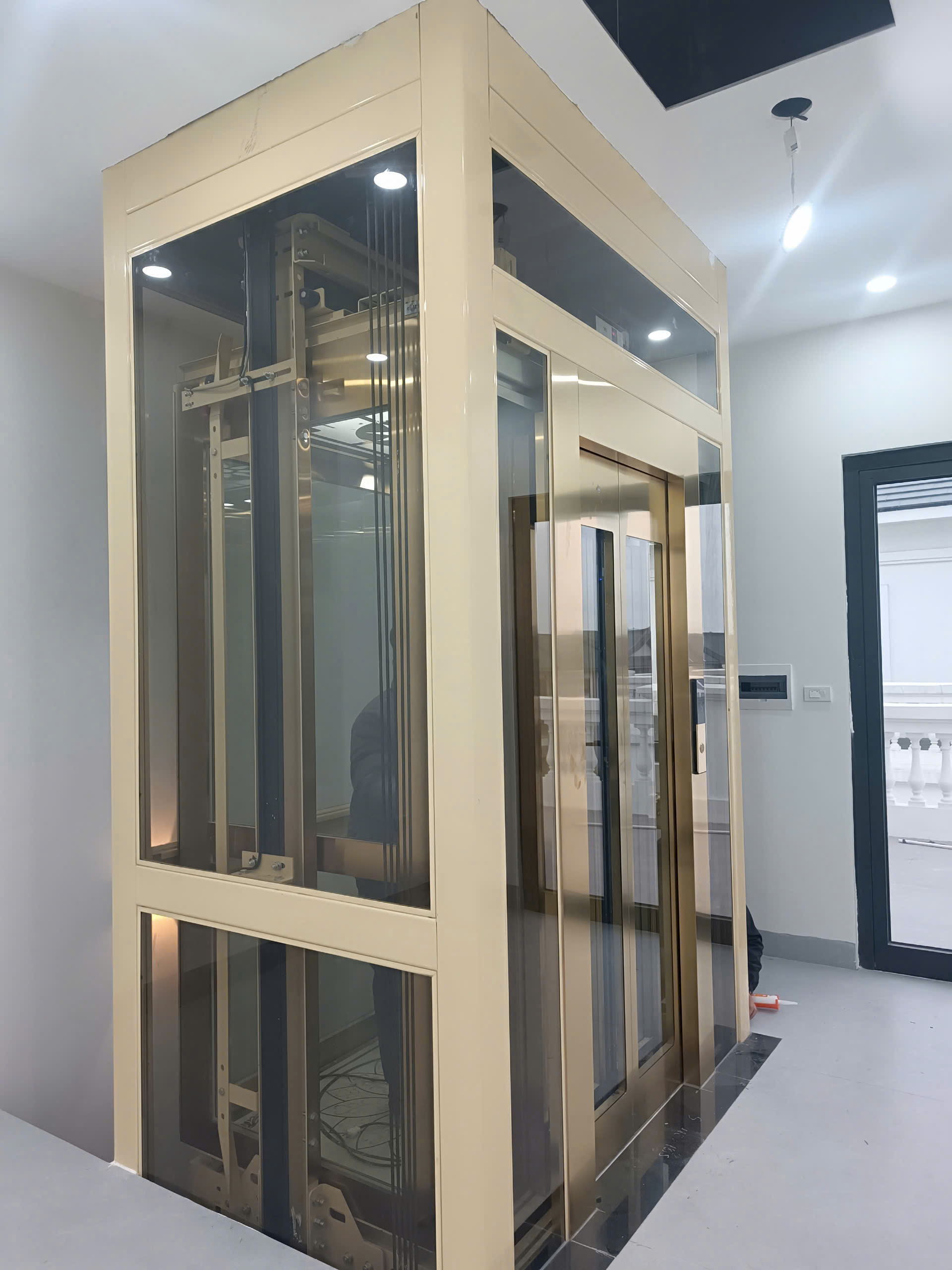 Giếng thang bê tông - 01: Thang máy được lắp trong giếng thang bê tông cố định, phù hợp với nhà xây mới hoặc cải tạo có không gian sẵn.2